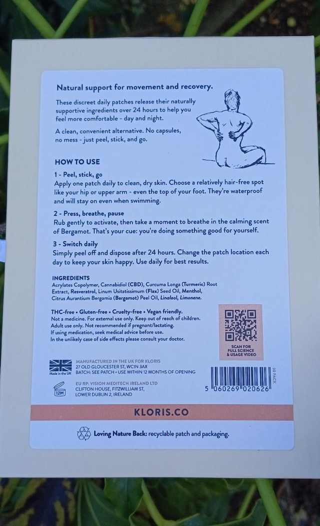 These waterproof patches from Kloris combine the power of CBD, Turmeric, Omegas and Resveratol to support joint health and comfortable movement.