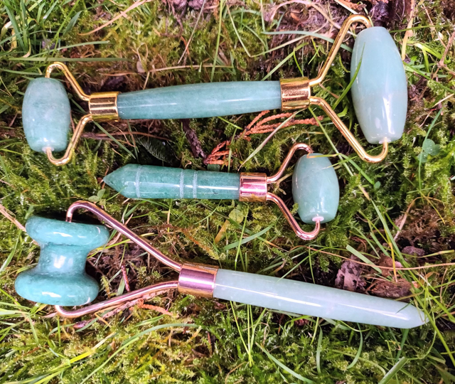 Using a crystal face roller can help reduce puffiness, ease sinus congestion, reduce the appearance of dark circles, tighten the skin and boost the circulation. Apply a good amount of face product (you don't want the skin to "drag") and roll slowly outwards and upwards in one direction.