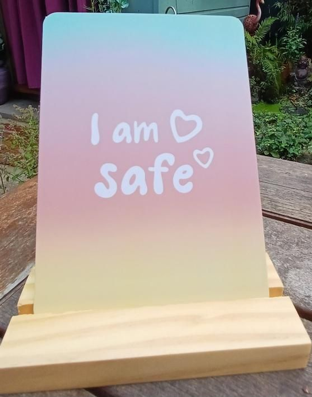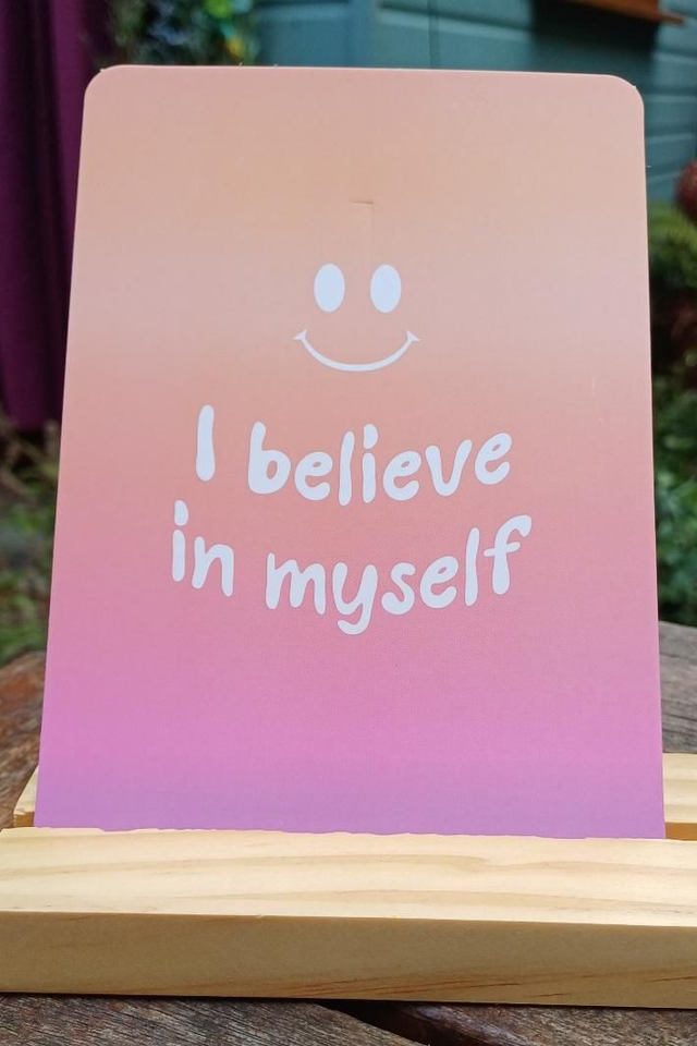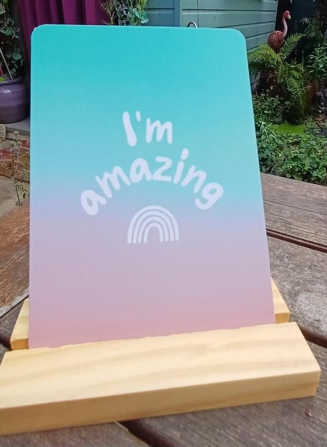 Lovely set of 10 affirmation cards with wooden stand. Suitable for any age.