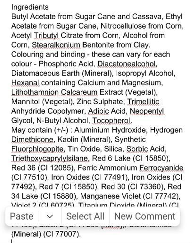 As well as being plant derived and kind to nails with added magnesium and calcium, the Bamboo cap replaces single use plastic and has 100% post consumer recycled plastic seal. The bottles can also be returned to Earthy to be reused. (Or just return them to me and I will pass them back on your behalf)