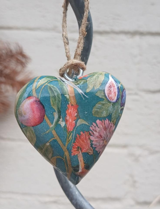 Beautiful mini heart decoration hand made in India from Mango Wood and finished in a floral/bird Enamel.